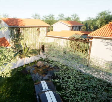 Ouverture toiture et murs porteurs qui apporte lumière et visibilité sur le terrain